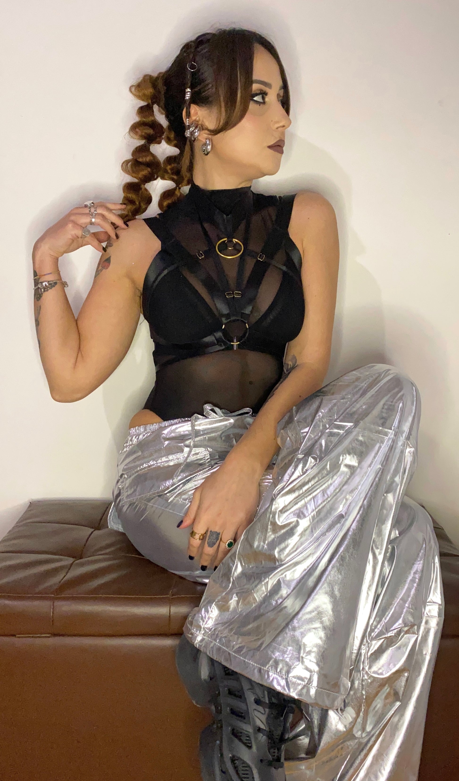 elastico in vita e in fondo alla gamba (regolabile)