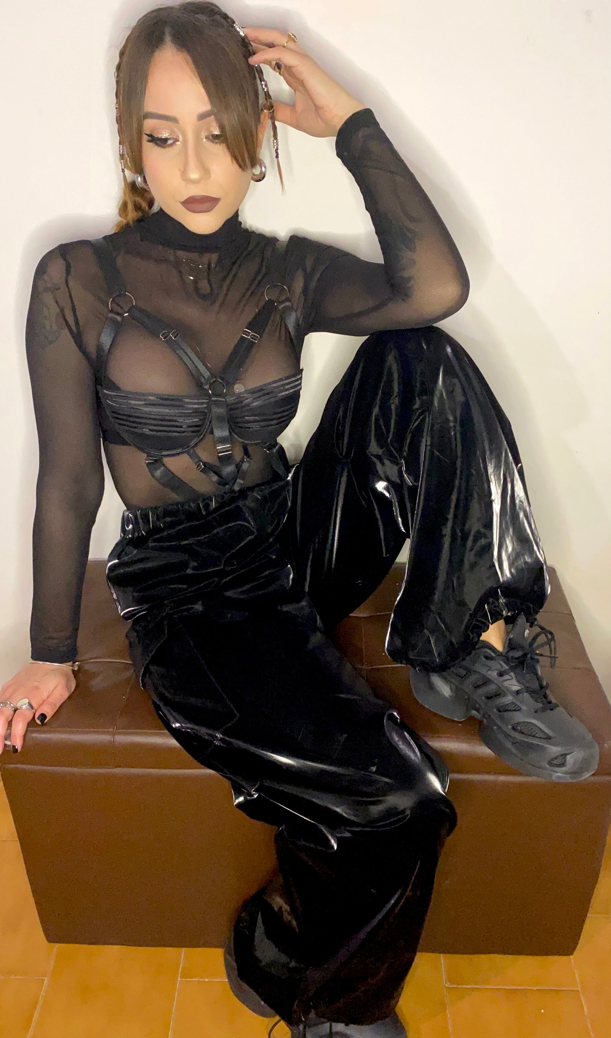elastico in vita e in fondo alla gamba (regolabile)